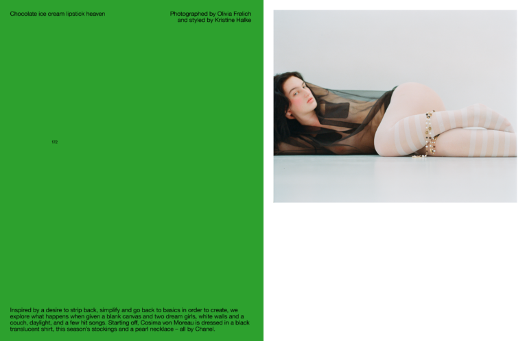 Olivia Frolich is a celebrated Danish photographer and director based in Copenhagen, renowned for her exceptional ability to capture the honest essence of her subjects and settings. Her work is distinguished by a playful twist that brings a unique, instantly recognizable aesthetic to her imagery.
